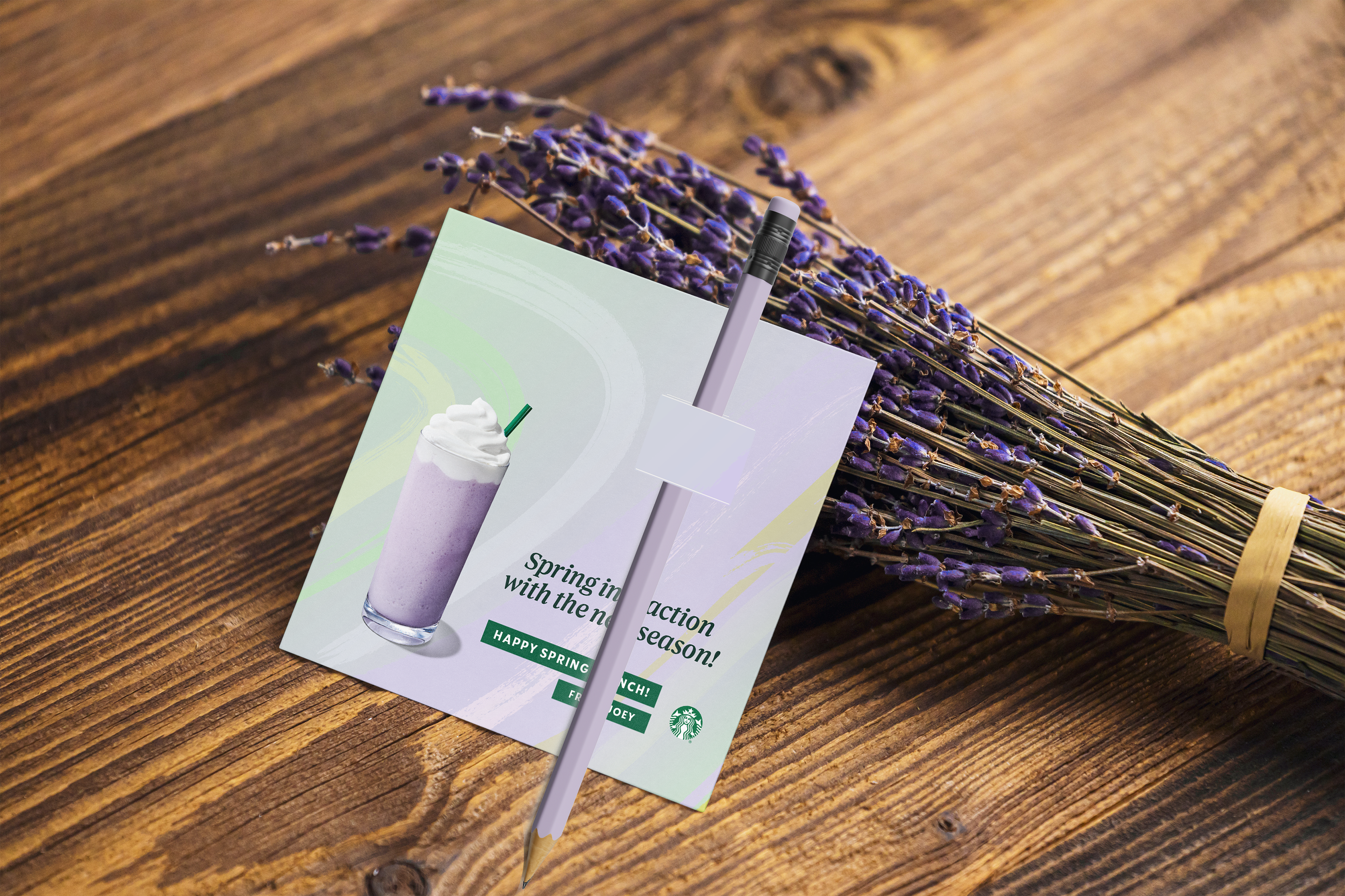 Spring has sprung! To celebrate the launch of our lavender beverage platform, I designed small prints with spring-y themed quotes & handed out lavender pencils to our business partners in the regional office.